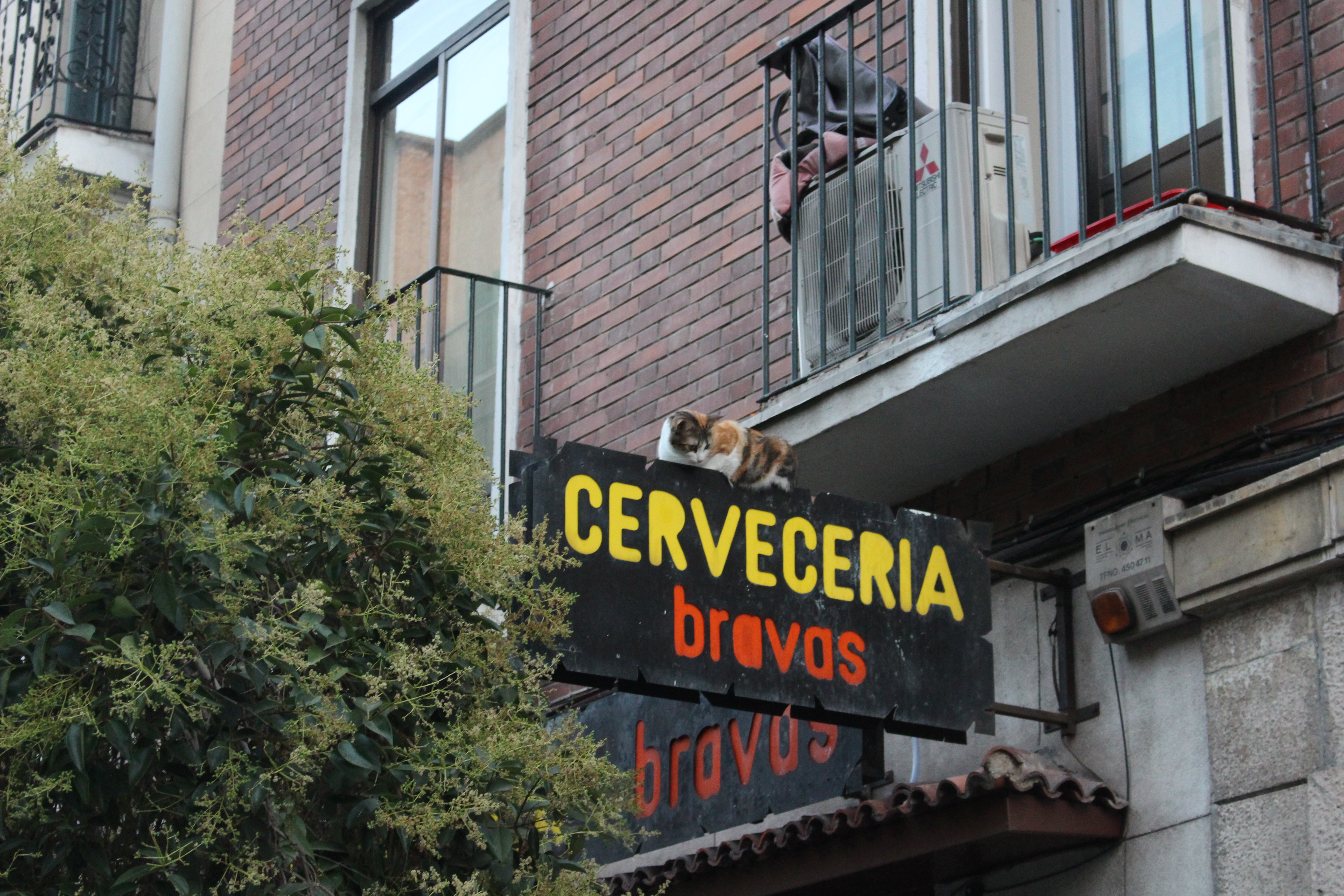 家を出て最初にしたかったのは、主人の話に良く出る私に似た猫に会うこと。そこで主人の行きつけのバールに行くと、いた!看板の上で寝ているミケネコ、確かに似ている気がする。